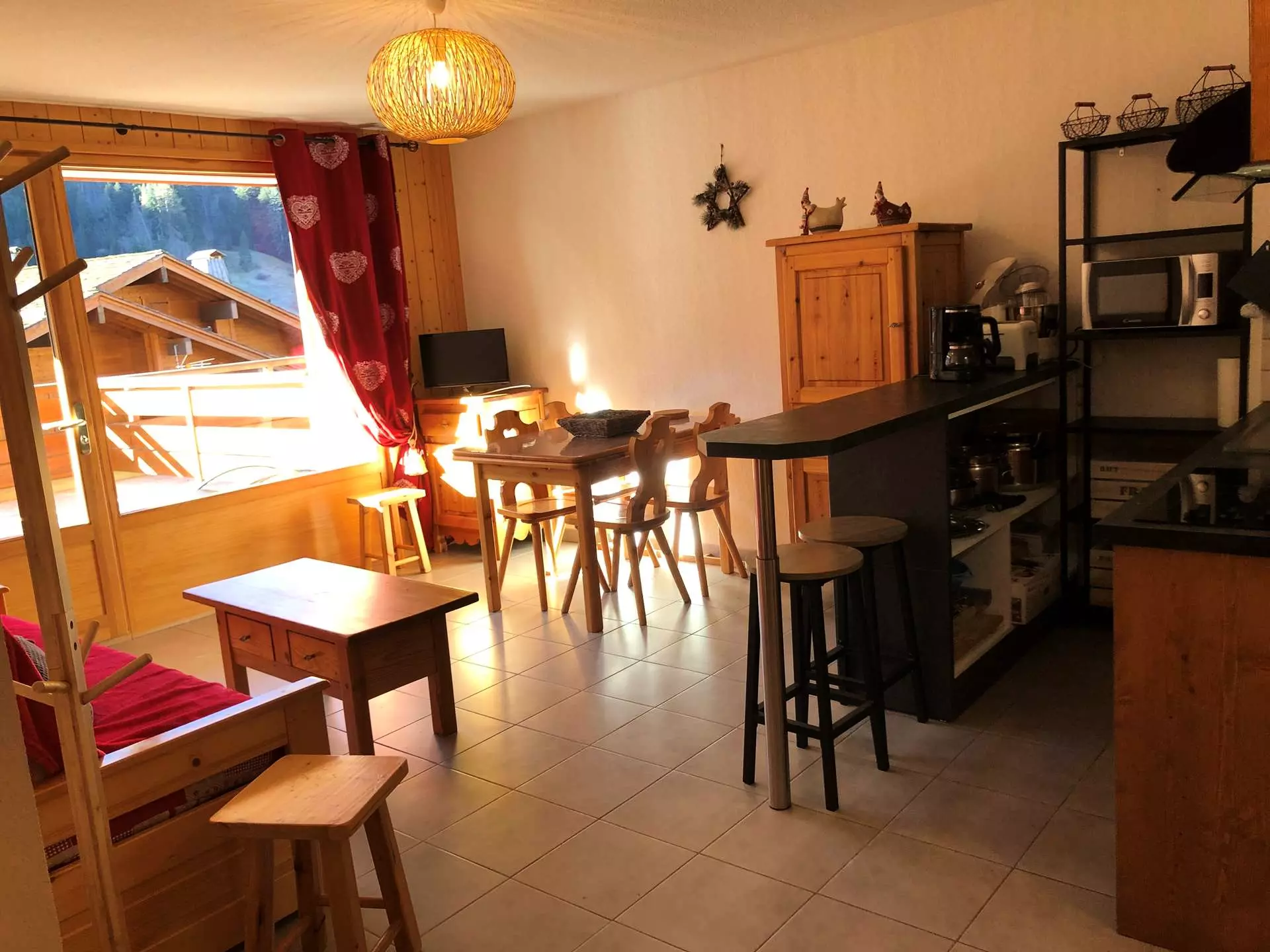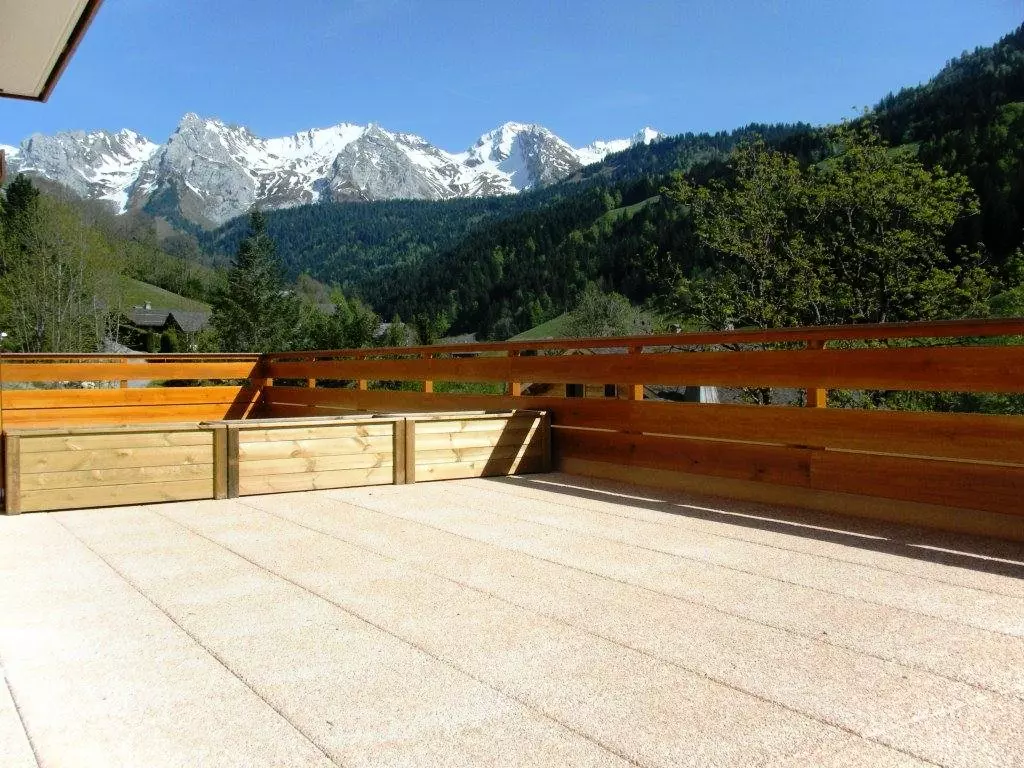 Gemütliches Apartment mit zum Wohnzimmer offener Küche und großer Südterrasse mit herrlichem Blick auf das Aravis-Massiv und das Dorf!